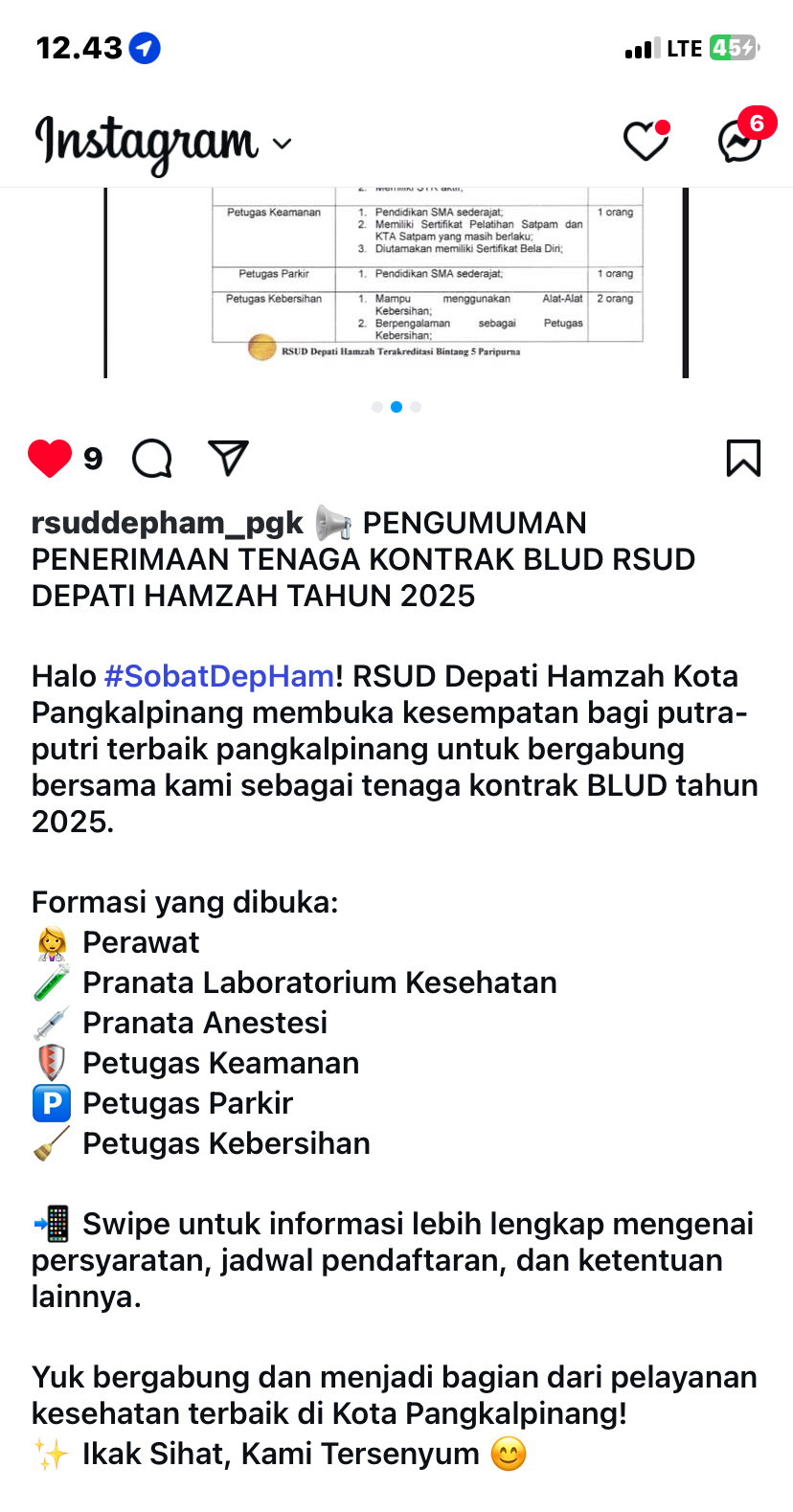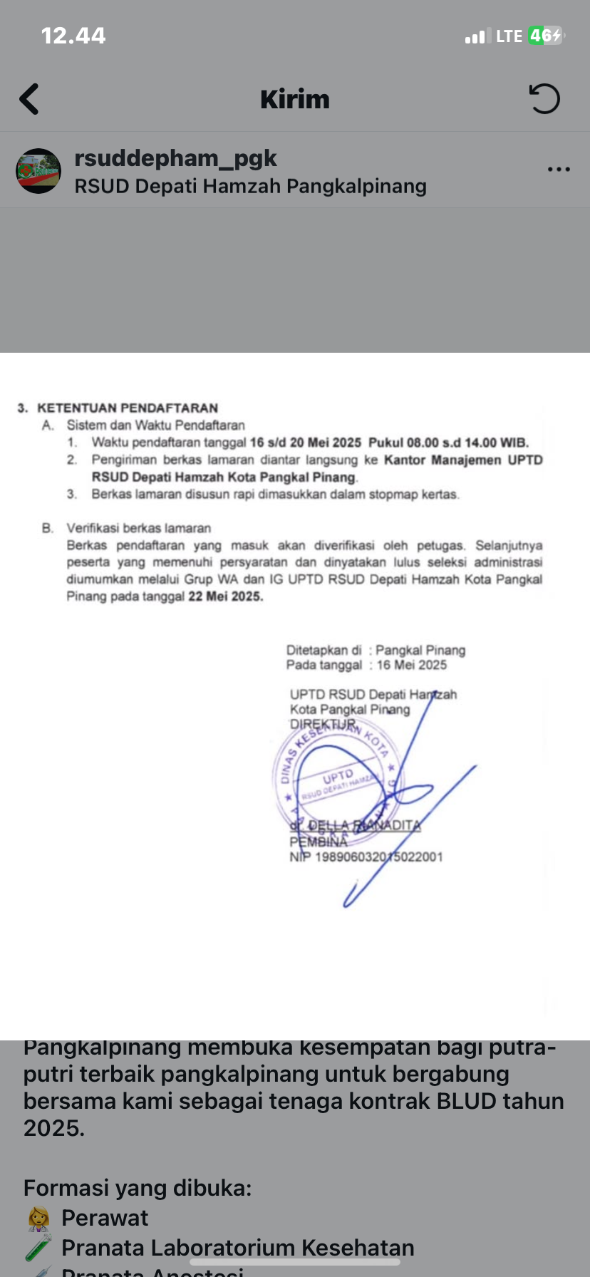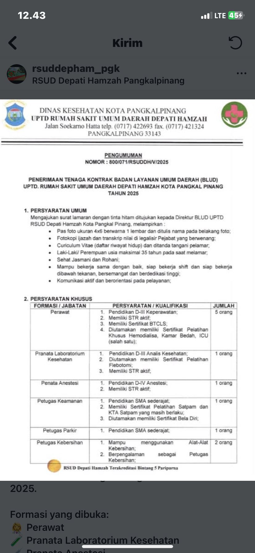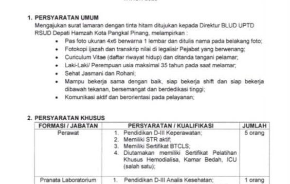 RSUD Depati Hamzah membuka kesempatan kerja untuk posisi: