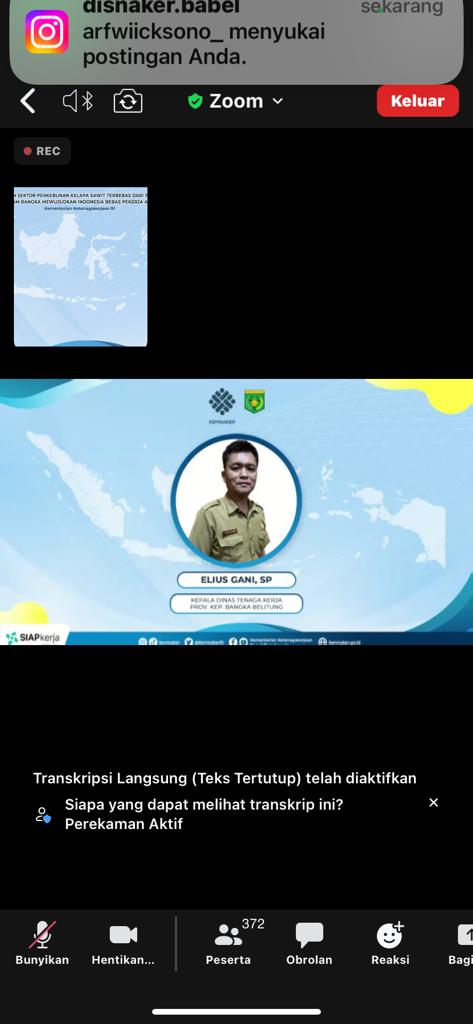 Hadir dalam zoom meeting Kemnaker RI,Ida Fauziah beserta kepala disnaker seluruh Provinsi,kabupaten & Kota, SPSI,Apindo dan beberapa unsur stakeholder serta pelaku usaha lainnya.
