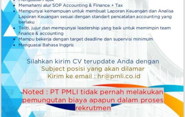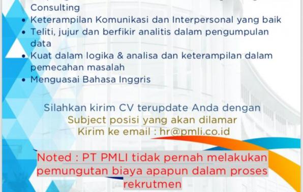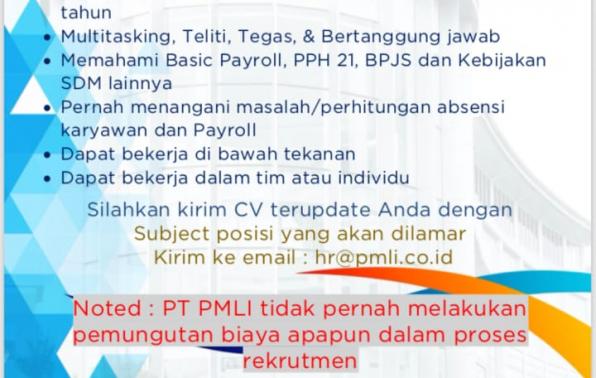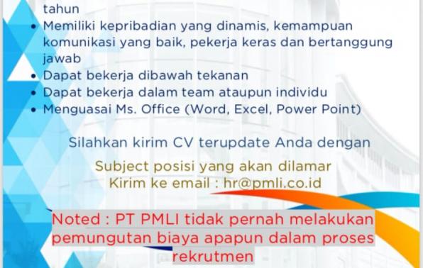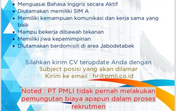 Ada 5  kesempatan bagus bagi rekan rekan yang ingin mencoba apply untuk beberapa posisi yang tersedia saat ini di perusahaan PT.PMLi