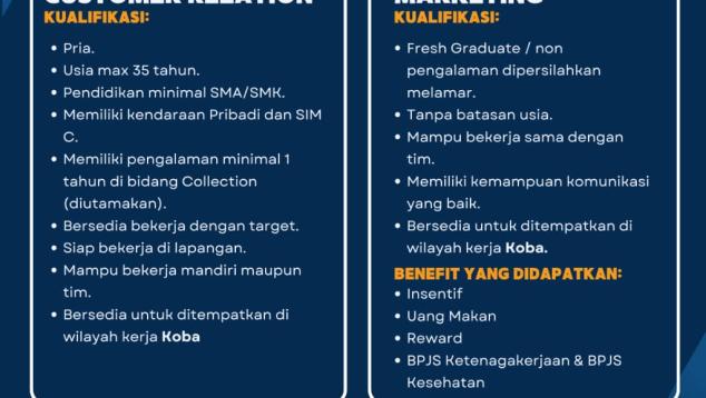 untuk posisi CUSTOMER SERVICE.