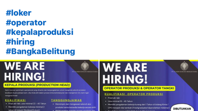Operator Produksi, diperlukan 14(empat belas) personil