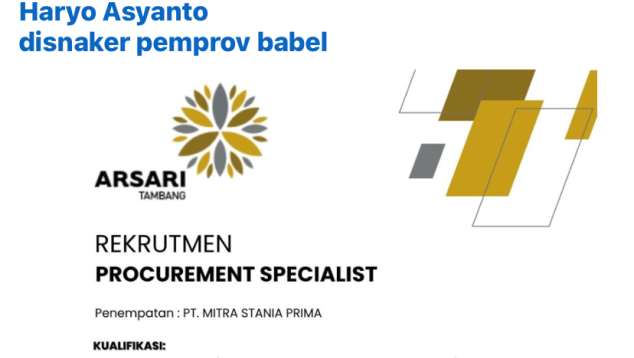 PROCUREMENT SPESIALIST, penempatan Bangka Belitung PT MITRA STANIA PRIMA. Lowongan terbuka sampai 24 April 2026