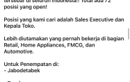 untuk posisi FIELD SALES EXECUTIVE Region Barat.