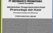 Official Account HRD Recruitment PT.indomarco Pristama (indomaret)-Cabang Palembang,Wilayah Sumatera Selatan.