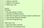 Syarat : laki² / perempuan, umur maksimal 26 thn, tamatan SMA/SMK/D3/S1 jurusan bebas, dapat bekerja dalam tim.