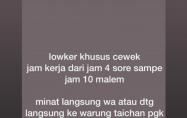 jam kerja mulai dari jam 16.00 wib - 22.00 wib, Perempuan.