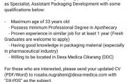 PT Dexa Medica is looking for young professional to join us as Specialist, Assistant Packaging Development with some qualifications below: