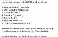Silahkan di cek di post yang sudah saya bgikan, kami masih memberikan peluang untuk D3/S1 untuk posisi sbb: