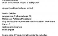 Project Controller untuk pelaksanaan Project di Balikpapan. dengan kualifikasi sebagai berikut Wanita/laki-laki pengalaman 3 tahun sebagai PC Menguasai Autocad, Mic.project Siap...