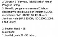 1. Section Head Quality Control Kualifikasi :