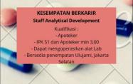 memberi kesempatan untuk berkarir pada posisi Staff analytical Development,