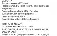 PT.Global Internasional Foods, membutuhkan QA/QC Staff utk ditempatkan di Tangerang-Dadap