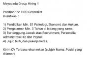 Mayapada Group Hiring !! Position : Sr. HRD Generalist
