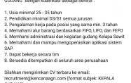membuka lowongan pekerjaan "KEPALA GUDANG" dengan kualifikasi sebagai berikut :