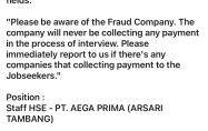 PT Aega Prima(Grup Arsari Tambang) membuka kesempatan kerja untuk posisi Staff HSE.