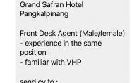 Grang Safran Hotel Pangkalpinang membujka kesempatan kerja untuk posisi FRONT DESK AGENT(Male/Female)