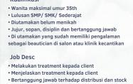 Sarma Klinik Kecantikan Pangkalpinang membuka kesemptatan kerja untuk posisi BEAUTICIAN Pangkalpinang
