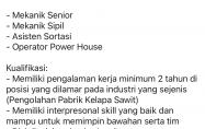 PT THEP bergerak di bidang perkebunan membuka kesempatan kerja untuk posisi:
