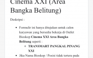 Cinemea XXI Pangkalpinang membuka kesempatan kerja untuk posisi CASHIER Transmart Pangkalpinang