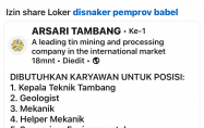 Mitra Stania Prima/Arsari Tambang-Bangka membuka kesempatan kerja untuk posisi: