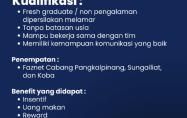 untuk posisi Area Sales Manager penempatan Pangkalpinang
