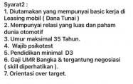 Supervisor Sales & Lease Back(divisi mobil)-PT KB FMF/kredit Plus-Pangkalpinang