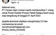 Asisten Proses Pabrik Kelapa Sawit-Bangka-Penyamun