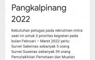 Rekrutment Mitra BPS/Badan Pusat Statistik-PangkalpinangBPS Kota Pangkalpinang membuka Rekrutmen Mitra BPS 2022 untuk petugas lapangan Sakernas, Susenas dan Pemetaan 2022 dengan syarat seperti yang...