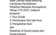 Balai Latihan Kerja Belitung membuka pendaftaran Pelatihan Berbasis Kkmpetensi Tahap II tahun anggaran 2021, meliputi program :
