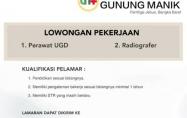 Membutuhkan Perawat UGD & Radiografer -rumahsakitGunung Manik @Jebus