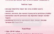 NADDCAKERY (Toko Kue & Bakery) membuka kesempatan kerja untuk posisi Perawatan Peralatan & Area Produksi