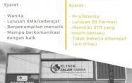 SYARAT : PRIA/WANITA,lulusan D3 analis Kesehatan,memiliki STR yang masih...