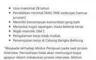 Persyaratan: pria/wanita,usia maksimal 27 tahun,ramah-jujur-disiplin,ulet &pekerja keras, bertanggungjawab,...