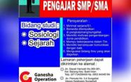 Membuka kesempatan kerja untuk mengajar di sekolah SMP/SMA pada bidang studi :