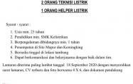 Membutuhkan TEKNISI LISTRIK sebanyak 2(dua) personil dan HELPER LISTRIK sebanyak 1(satu) personil