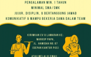 Persyaratan: pria/wanita, pengalaman minimal 1(satu) tahun, minimal pendidikan SMA/SMK, jujur, disiplin,...