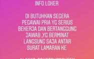 Persyaratan: pria, serius bekerja, bertanggungjawab.