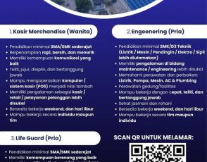 untuk posisi Retail Asistant penempatan Belitung-Tanjungpandan.