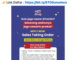 untuk posisi SALES TAKING ORDER penempatan Bangka.
