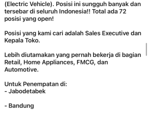 untuk posisi FIELD SALES EXECUTIVE Region Barat.