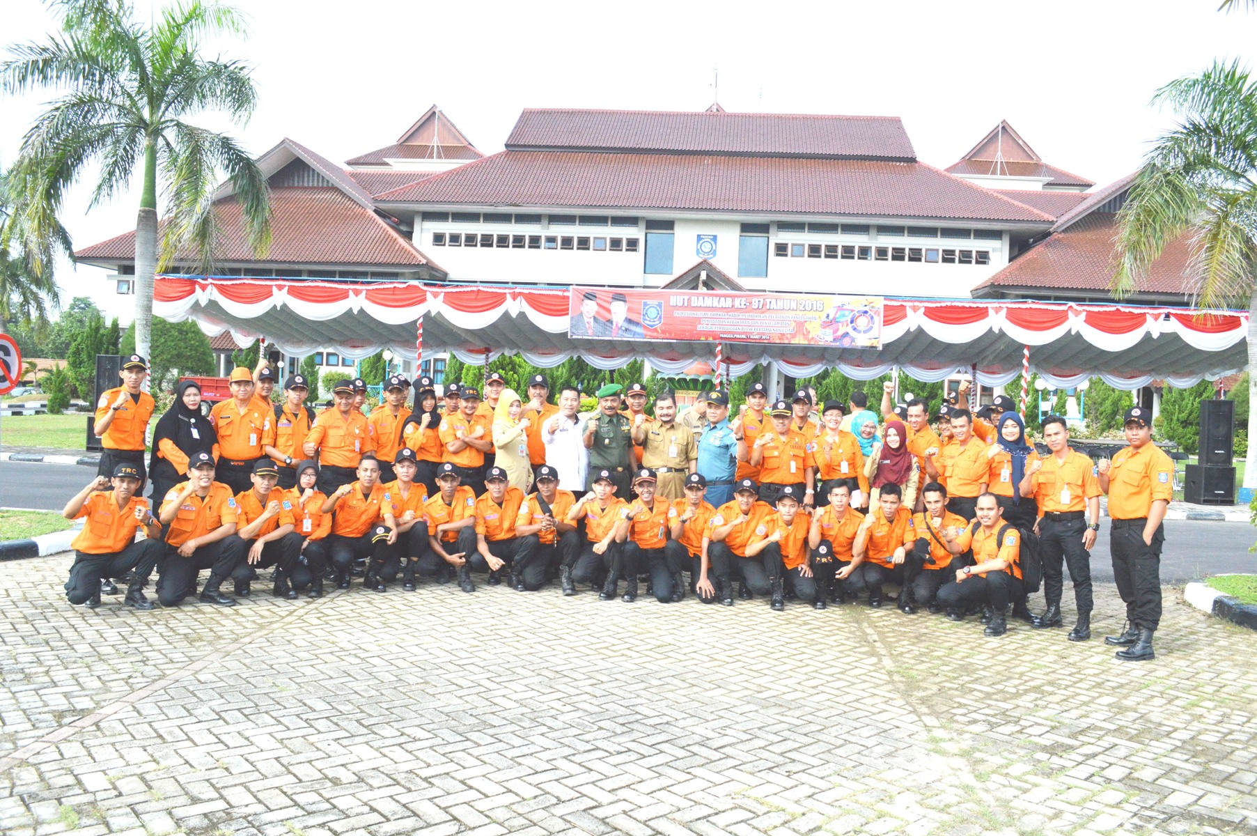 Selaku Inspektur upacara dipimpin oleh  Asisten Sekretaris Daerah Bidang Administrasi Umum, Sahirman, memperingati dan mensosialisasikan berkenaan dengan hari Damkar se Indonesia yang dirayakan serempak. Dalam pelaksanaan tersebut  di hadiri oleh segenap jajaran pejabat eselon II Pemerintah Provinsi Kep.Bangka Belitung, unsur Muspida Bangka Belitung beserta tamu undangan lainnya dan segenap pejabat eselon IV dan staf pemerintah Provinsi Kep.Bangka Belitung.