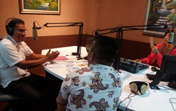 Pangkalpinang, Kepala dinas Tenaga kerja Pemprov Babel,H.Patriadie lakukan streaming/siaran langsung di Radio In Babel 97,6 FM,berkenaan dengan penetapan Upah Minimum Provinsi yang mulai berlaku pada 01 januari 2020, (Rabu,30/10/19).