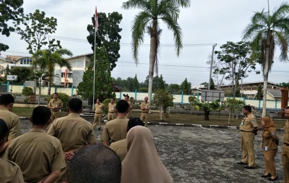 Pangkalpinang,Dalam pelaksanaan apel pagi,Kadisnaker Babel,H.Patriadie menyampaikan beberapa hal penting di hadapan semua jajaran pegawai ASN dan Honorer,Selasa,(22/10/19).
