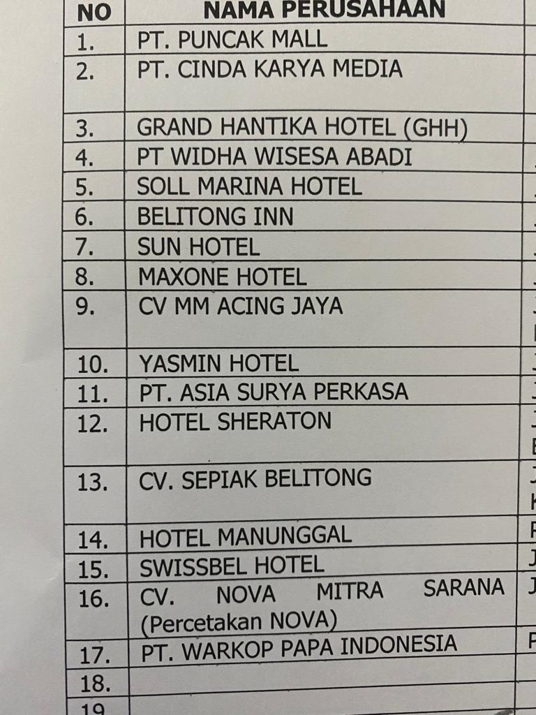 - jumlah perusahaan yang berpartisipasi akan mencapai 17(tujuh belas) berlokasi di wilayah Pulau Bangka & Pulau Belitung.