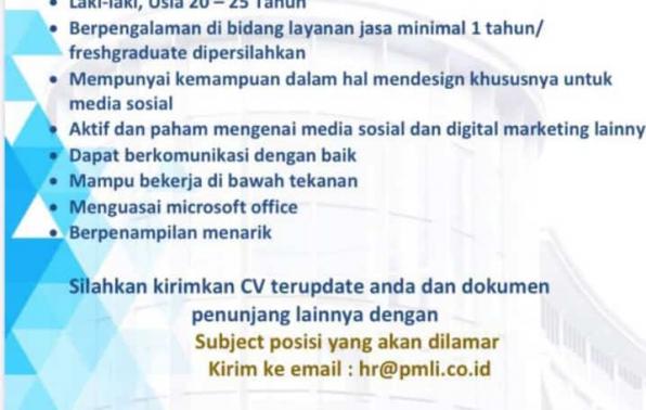 PT PMLI memerlukan personil untuk menjabat :
