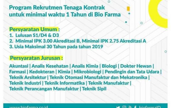 program rekrutmen tenaga kontrak untuk minimal waktu 1 (satu) tahun di Bio Farma.