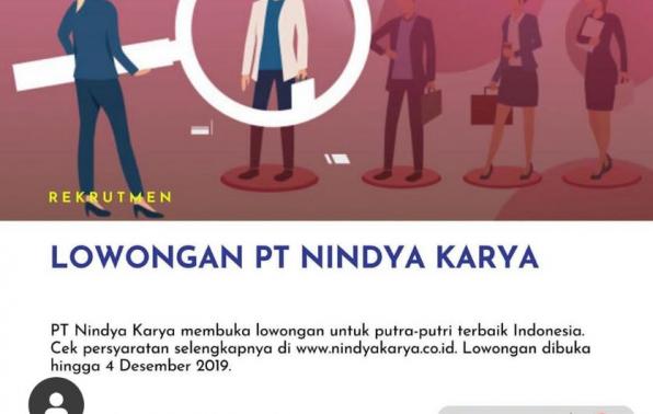 PT Nindya Karya membuka lowongan untuk putra-putri terbaik Indonesia untuk posisi: