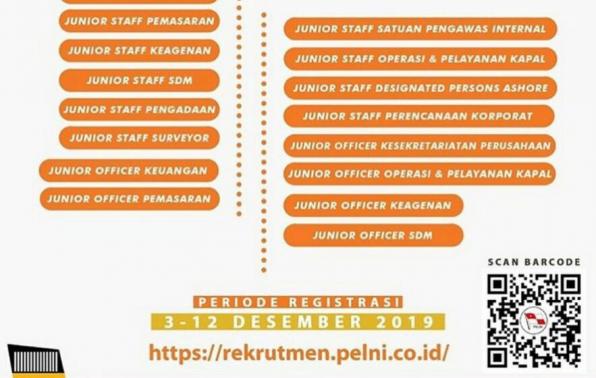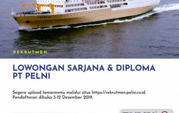 PT PELNI (Persero) sedang mencari putra dan putri terbaik bangsa untuk bergabung ke dalam keluarga besar PT PELNI (Persero). Periode pendaftaran mulai 3-12 desember 2019. Segera upload lamaranmu .