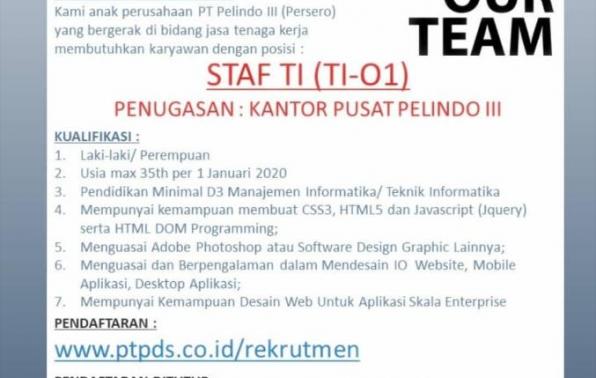 Kami anak perusahaan PT Pelindo III (Persero)yang bergerak di bidang jasa tenaga kerja membutuhkan karyawan dengan posisi :