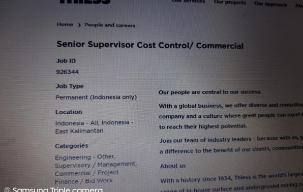 2. Senior Supervisor Cost Control/Commercial, Applications close on December 27th, 2019.